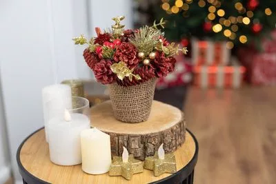 Ikebana MagicHome Karácsony, természetes, piros, 17x17 cm