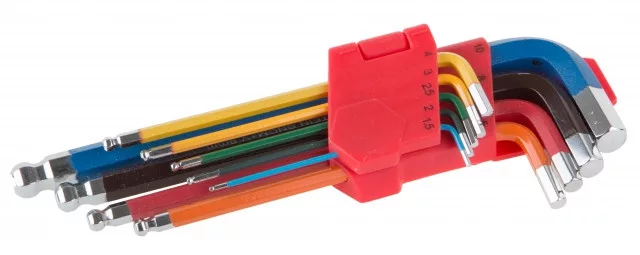 Imbuszkulcs készlet 9 db. Gombvégű 1,5-10 mm színes
