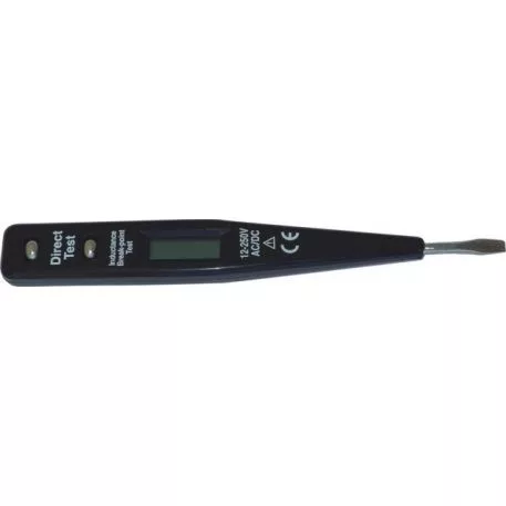 Egyen és váltakozó feszültséget méri 12V - 230V. Kijelzi a fázisvezeték folytonosságát a szigetelésen keresztül, ill. a szakadás helyét a szigetelésen keresztül.