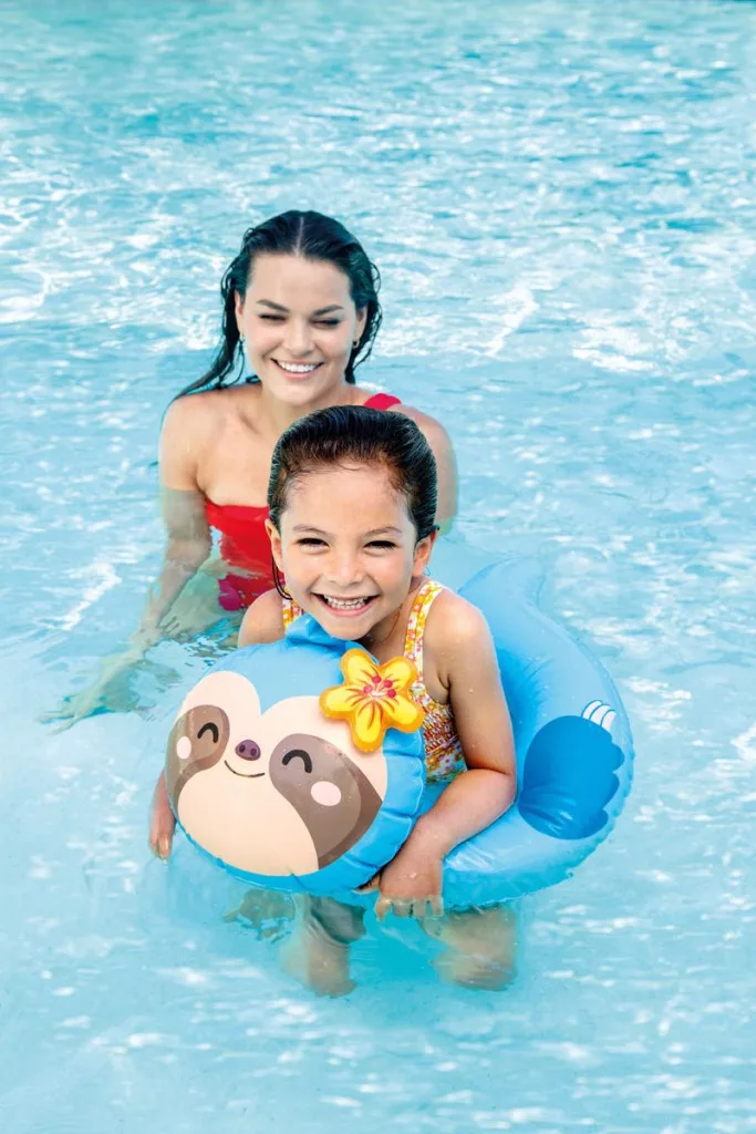 Az Intex® 59220NP Gyermek felfújható gyűrűs állatos úszógumi egy szórakoztató úszási segédeszköz, amelyet 3 és 6 év közötti gyermekek számára terveztek. A gyűrű többféle játékos, állatmotívumokkal díszített kivitelben kapható, amelyek minden gyermeket elbűvölnek, és élvezetesebbé teszik a vízben töltött időt.