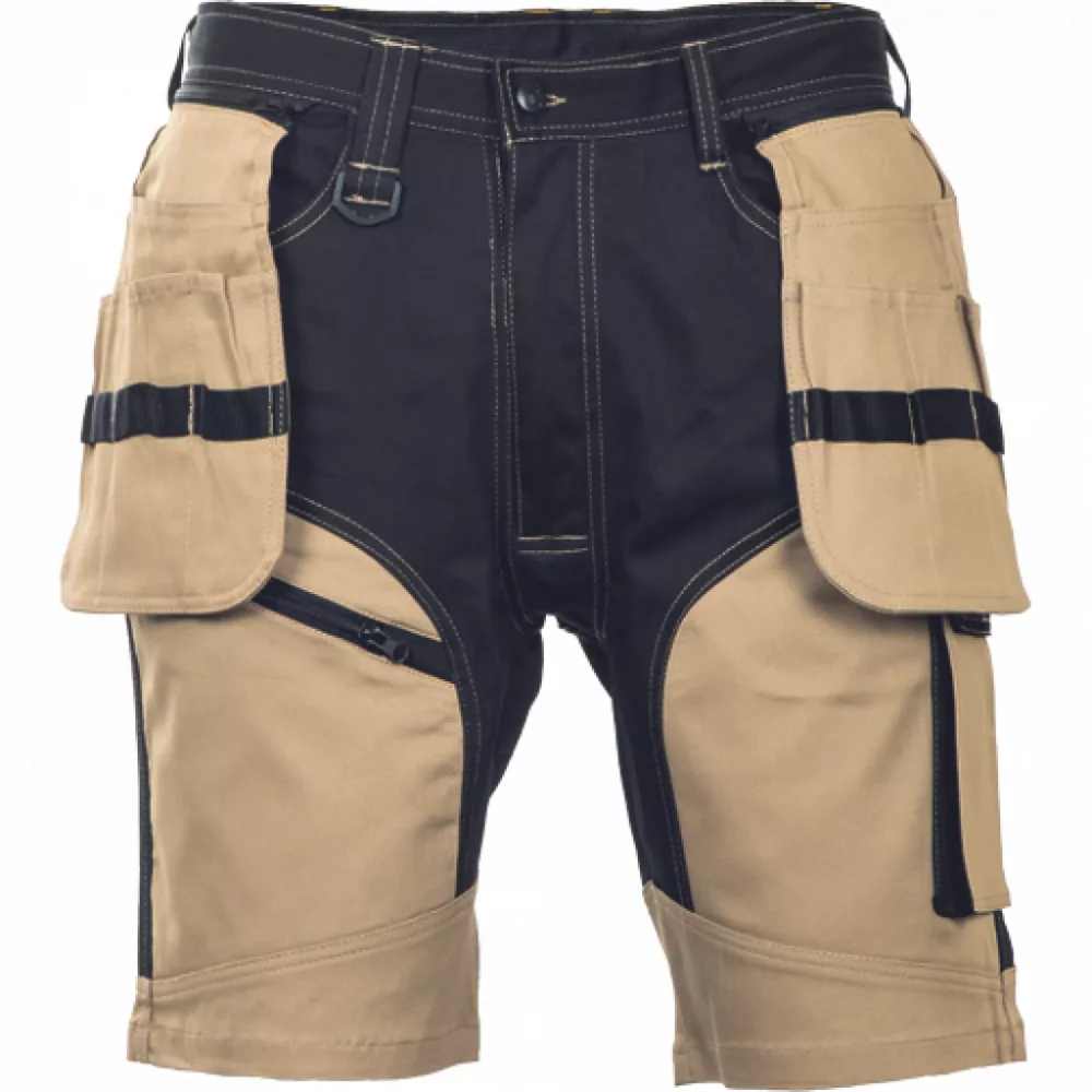 minőségi férfi rövidnadrág rugalmas anyagból; multifunkcionális zsebek; 2 extra levehető multifunkcionális szerszámtartó zseb; dekoratív varrás