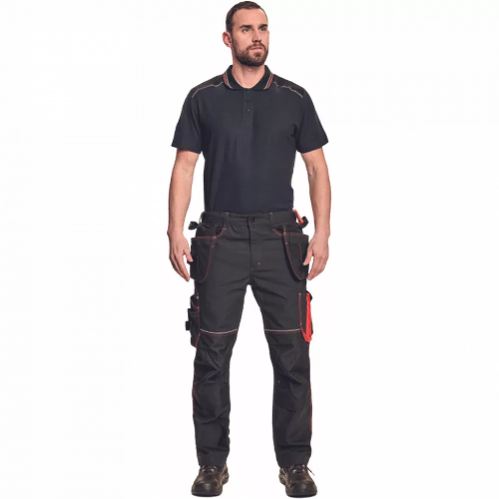 2 oldalsó zseb, 2 repülőzseb szerszámtartó hurokkal, 1 átlátszó zseb az igazolvány számára, D-gyűrű;