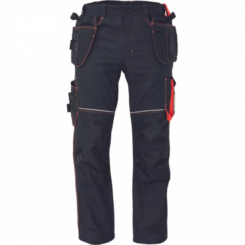 2 oldalsó zseb, 2 repülőzseb szerszámtartó hurokkal, 1 átlátszó zseb az igazolvány számára, D-gyűrű;