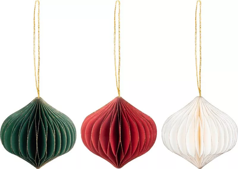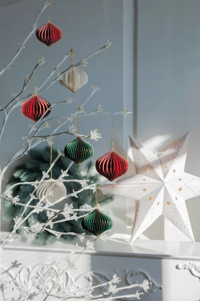 A stílusos, gömb alakú karácsonyi díszek elegáns és modern megjelenést kölcsönöznek a fának. Ezek a papírdíszek kiváló minőségű , kézzel készített papírból készültek, ami szilárd textúrát és ugyanakkor puha, természetes megjelenést kölcsönöz nekik.