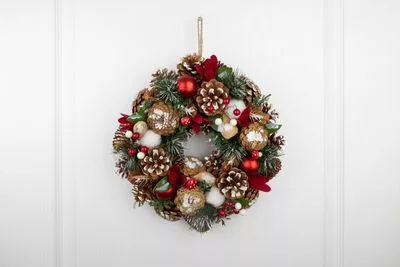 Koszorú MagicHome Vianoce, természetes, függő, fenyővel és légygombákkal, 30x8 cm