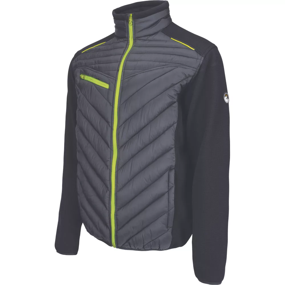 • dzseki steppelt anyag és kötött ujjak kombinációjával • jól láthatósági színkiemelés és fényvisszavető részletek • 2 oldalzseb • cipzáras mellzseb