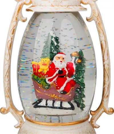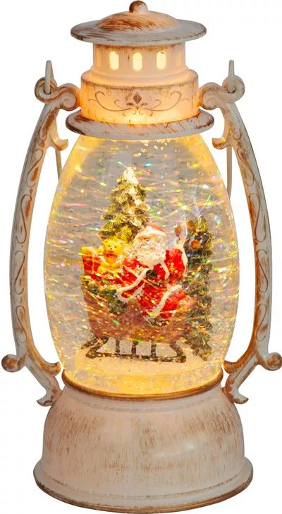 Lámpás MagicHome Karácsony Retro, LED meleg fehér, Mikulással a szánon, csillámokkal, fehér, 3xAA, m