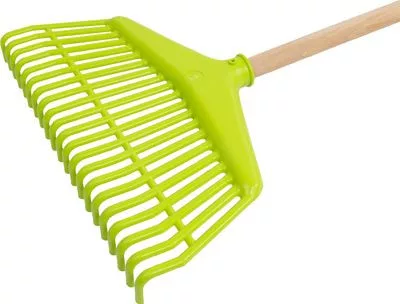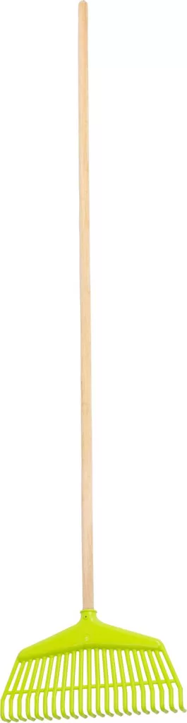 A kerti gereblye az egyik legfontosabb segítő a kertben. A gereblyével gereblyézze össze a leveleket, a fűnyesedéket vagy más kerti hulladékot. A gereblye a felső talaj levegőztetésére, a moha és a gyökerek feltörésére is használható. A fej szélessége 580 mm