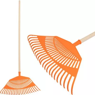 A robusztus és könnyű gereblye nagyszerű segítség a kerti munkák során. A tartós műanyag fogak tökéletesen alkalmasak a levelek és a fű gereblyézésére anélkül, hogy az egyes fogak közötti résekben fennakadnának. Hossza 30 cm, szélessége 53 cm.