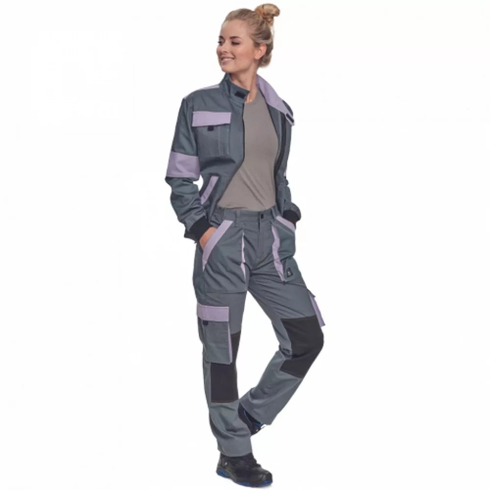női cipzáras munkakabát könnyű pamutszövetből; 2 első zseb, 2 dupla mellzseb hajtókával, 1 zseb a bal ujjon; megerősítés a váll és könyök részeken; rugalmas mandzsetta és alsó derékszegély; anyag: 100% pamut, anyagvastagság: 220 g/m2
