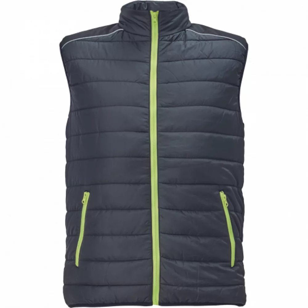 férfi, könnyű, cipzáras mellény; rugalmas derék; 2 oldalsó zseb, 2 cipzáras mellzseb