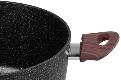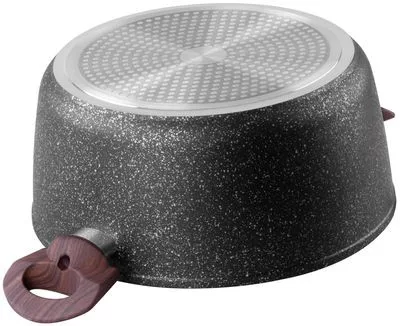 Ha fontosnak tartja a kiváló minőségű konyhai eszközöket, ez a fazék tökéletes választás. A MagicHome Black Marble Line fazék fedővel alumíniumötvözetbol készült, tapadásmentes felülettel és 3 rétegű márvány bevonattal. 3 mm-es indukciós alja van, ami energiát takarít meg. A fa bevonattal ellátott fogantyú lángvédelemmel rendelkezik. A fazék minden típusú tűzhelyhez alkalmas: indukciós, elektromos, gáz, üvegkerámia és halogén, valamint mosogatógépben is mosható.