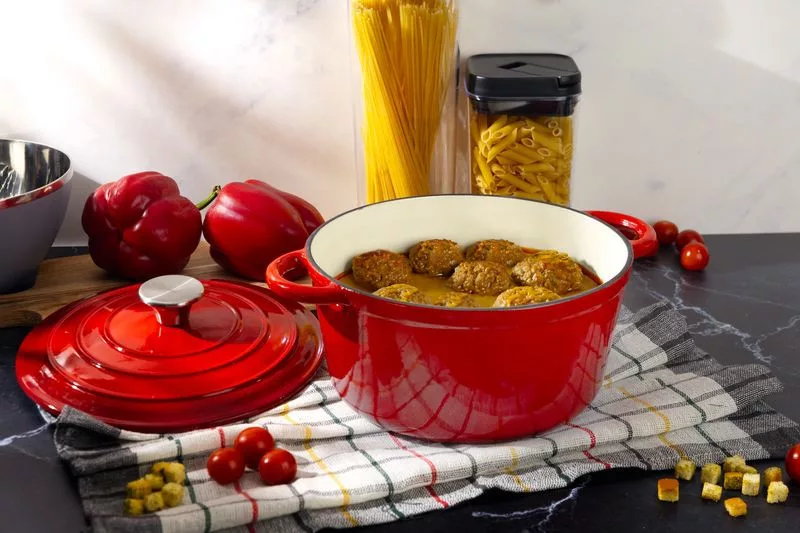 A Magichome Castora Line zománcozott öntöttvas edény , 24 cm-es, 4,0 l-es, ideális ízletes és szaftos ételek elkészítéséhez.