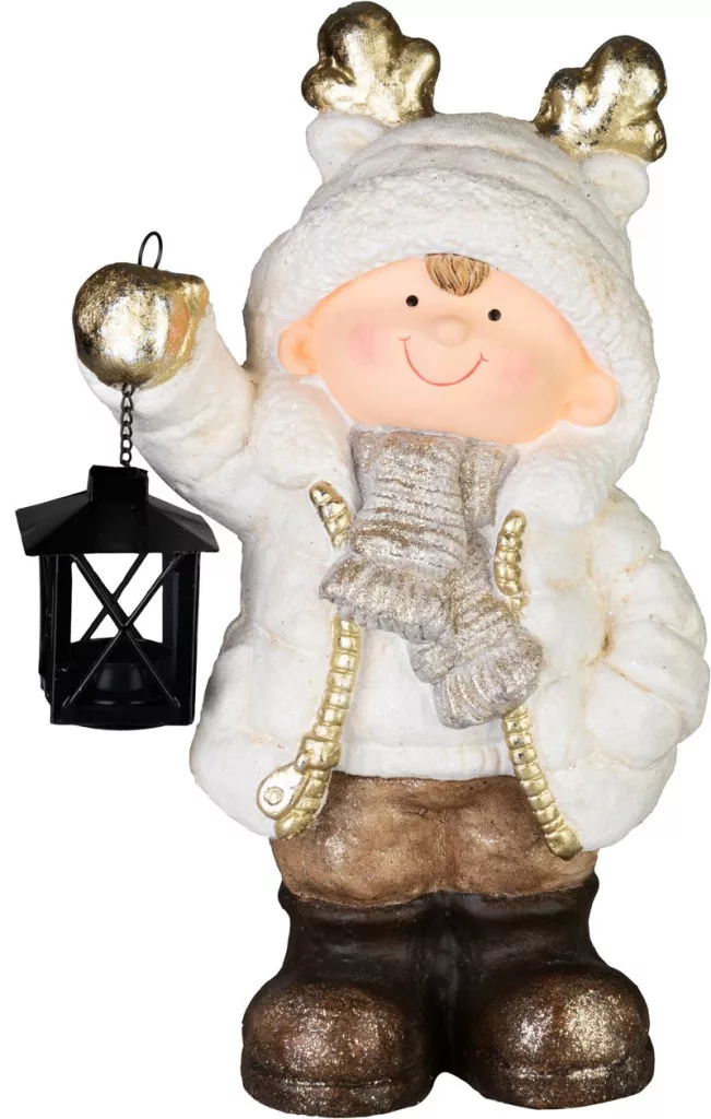 A MagicHome karácsonyi dekoráció Karácsony - Fiú lámpával egy bájos kiegészítő, amely feldobja a belső teret és kellemes ünnepi hangulatot teremt. A téli ruhába, sapkába és kabátba öltözött fiú figurája egy stílusos lámpát tart, amely a karácsonyi melegséget és fényt szimbolizálja.