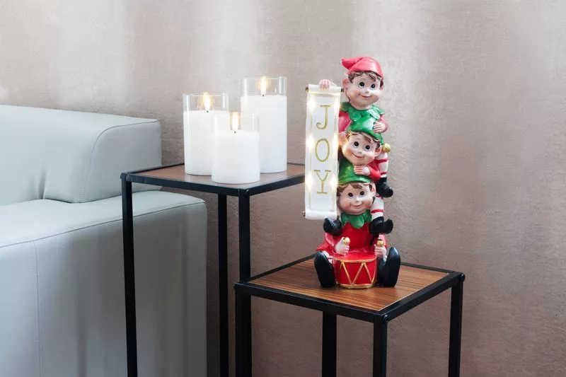 Hozzon örömet és játékosságot otthonába a MagicHome Christmas - Christmas Elves dekorációval. Ez a gyönyörű dekoráció vidám manókat ábrázol, amelyeken a JOY szó látható, a LED-világítás pedig meleg és hangulatos megjelenést kölcsönöz az egésznek.