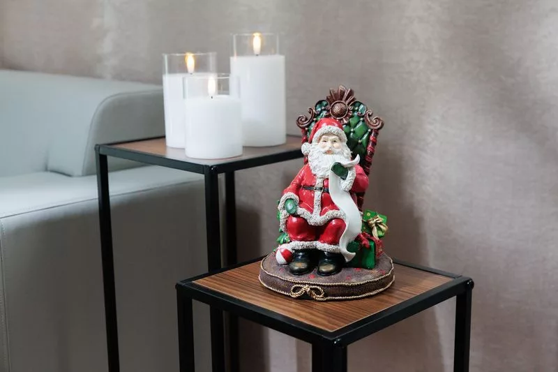Az eredeti MagicHome Mikulás karácsonyi dekoráció az ünnepek igazi hangulatát hozza el otthonába. A feldíszített trónon ülő, ajándékokkal és listával a kezében ülő Mikulás figurája kiváló minőségű anyagból készült, ami részletgazdag és elegáns megjelenést kölcsönöz neki.