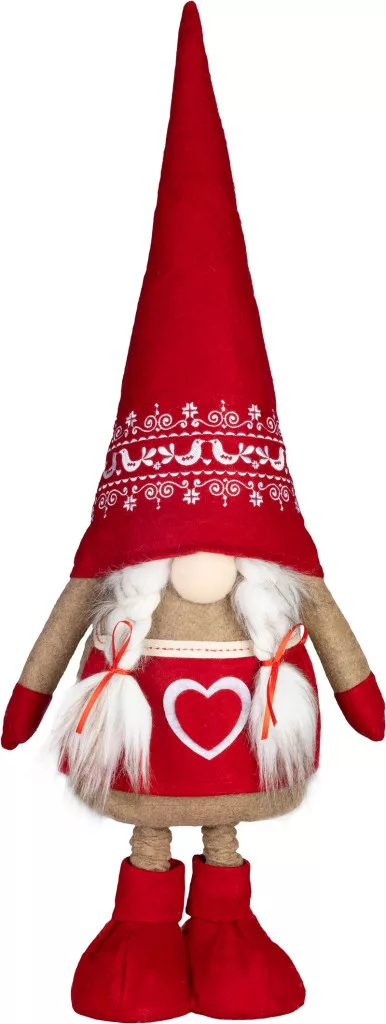 Varázslatos hangulatot varázsolhatsz otthonodba a MagicHome karácsonyi törpe dekorációval. Ez az aranyos, piros ruhás, szív motívummal díszített lány alakú figura vidám és melegséget árasztó hangulatot varázsol bármelyik szobába.
