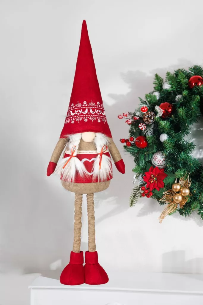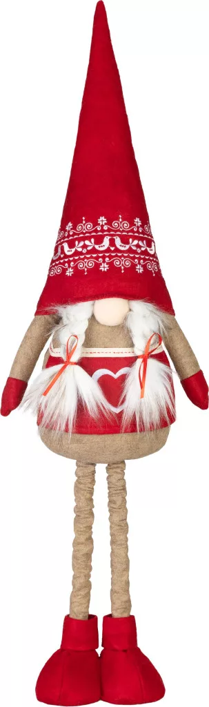 A törpe puha anyagból készült, hosszú piros sapkákkal és részletes elemekkel kiegészítve, amelyek egyedi megjelenést kölcsönöznek neki. A kihúzható lábaknak köszönhetően magassága állítható, így remekül illeszkedik a térhez és az elrendezéshez.