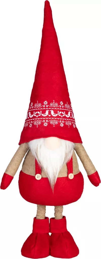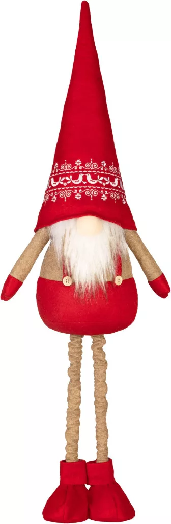 A gnóm kiváló minőségű szövetanyagból készült, és a kihúzható lábaknak köszönhetően a magassága könnyen állítható, akár 90 cm-re is. Ideális a fa alá, a karácsonyi asztalra vagy a nappali feltűnő elemeként a nappaliban való elhelyezéshez.