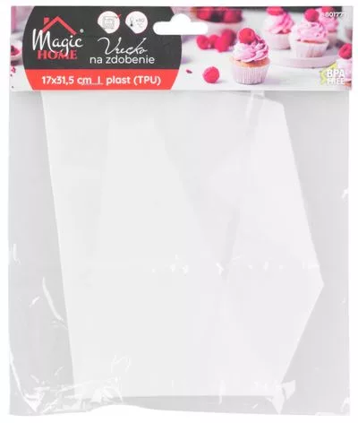 MagicHome zacskó sütemények, desszertek, piték és sós ételek díszítésére és töltésére. Tartós, rendkívül rugalmas TPU anyagból (termosztatikus poliuretán) készült. Egyszerűen tisztítható. Mosogatógépben mosható. Méretek: 17 x 31,5 cm.