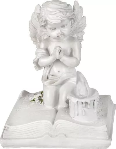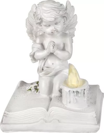 MagicHome dekoráció, Imádkozó angyal könyvön, LED, polirezin, sírhoz, 11,5x7,5x13,5 cm
