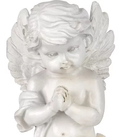 A kerámia szolárdísz egy imádkozó angyal egy könyvön egy gyertyával egy ízléses és finom dekoráció, amely nem csak a sírra, hanem gyászrendezvények és ikebanok díszeként is alkalmas.
