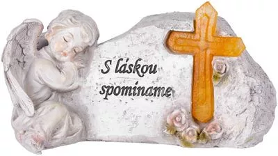 A kereszttel kombinált angyalkerámia dekoráció ízléses és visszafogott dekoráció, amely nemcsak a sírra illik, hanem temetési dísznek, ikebanának is. Érdekes elem a szlovák Szeretettel emlékezünk felirat. 1x LED meleg fehér színben. Méretek: 22,5 x 12,5 x 11 cm.