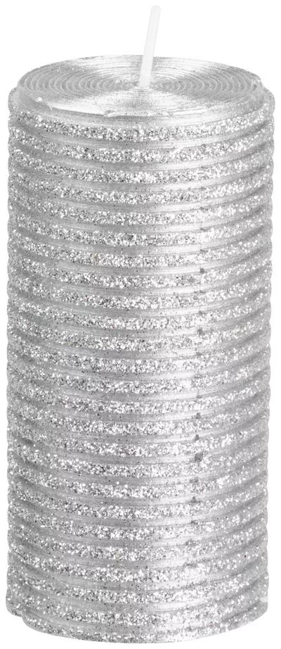 MagicHome karácsonyi gyertya, 5 x 9,5 cm, ezüst, csillámokkal