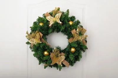MagicHome karácsonyi díszfaág pillangóval, arany színű, 18 cm