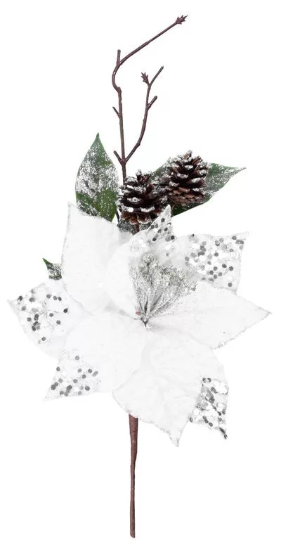 MagicHome karácsonyi ág, mikulásvirággal, fehér, 34 cm