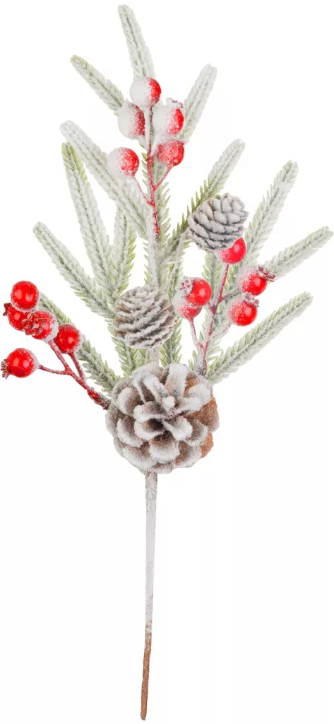 A természetes megjelenésű és lágy, havas hatású MagicHome karácsonyfa ág ideális kiegészítője lehet az ünnepi otthonnak. A dekoráció fenyőtobozokkal és piros nyilakkal van díszítve , amelyek autentikus téli hangulatot kölcsönöznek neki és fokozzák a karácsonyi hangulatot.