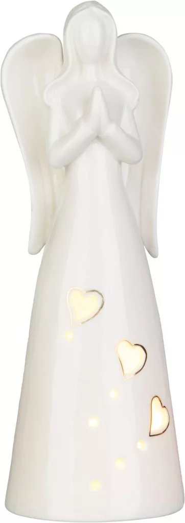 Az elegáns MagicHome angyal karácsonyi dekoráció egy kis békét és ünnepi hangulatot hoz otthonába. Kiváló minőségű anyagból készült, lágy fehér színben, és LED-világítással egészíti ki, amely a dekoratív szív alakú lyukakon keresztül világít, és kellemes meleg fényt teremt.