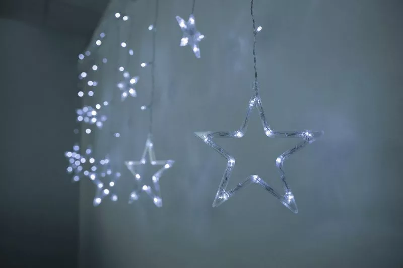 MagicHome karácsonyi függönylánc - 138x LED, hideg fehér, csillagokkal