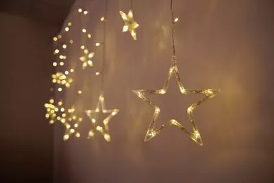 MagicHome karácsonyi függönylánc, 138x LED meleg fehér, csillagokkal, 230V, 8 funkciós, világítás, L-220x60/90 cm