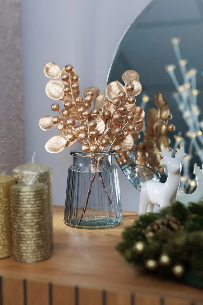MagicHome karácsonyi gally, bogyókkal, arany, 27 cm