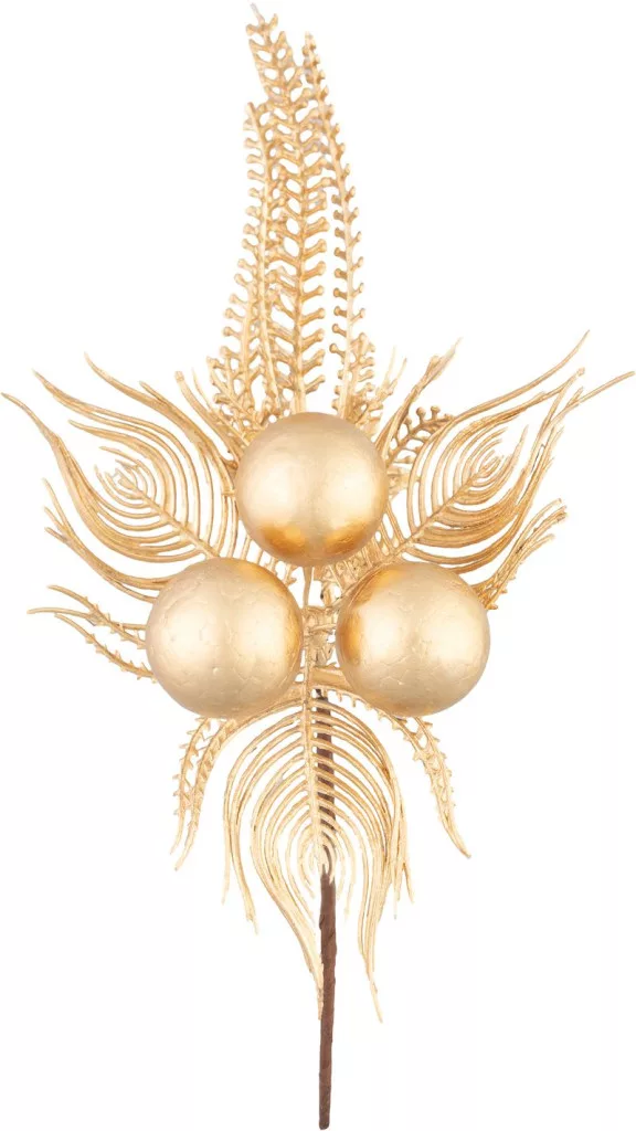 MagicHome karácsonyi gally, pávatollas, arany, 22 cm