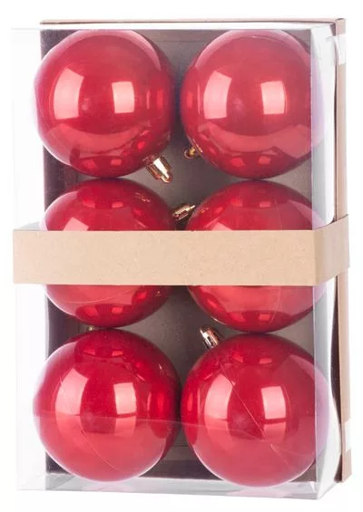 A karácsonyfa díszkészlet a karácsonyfa ünnepi díszítésére szolgál. 6 db 8 cm átméroju darabból álló karácsonyi gömbbol áll. A gömbök színe piros. Muanyagból készült.