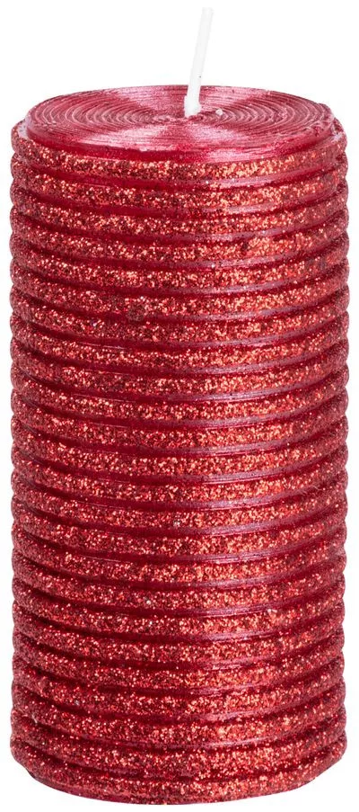 MagicHome karácsonyi gyertya, 5 x 9,5 cm, piros, csillamokkal