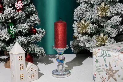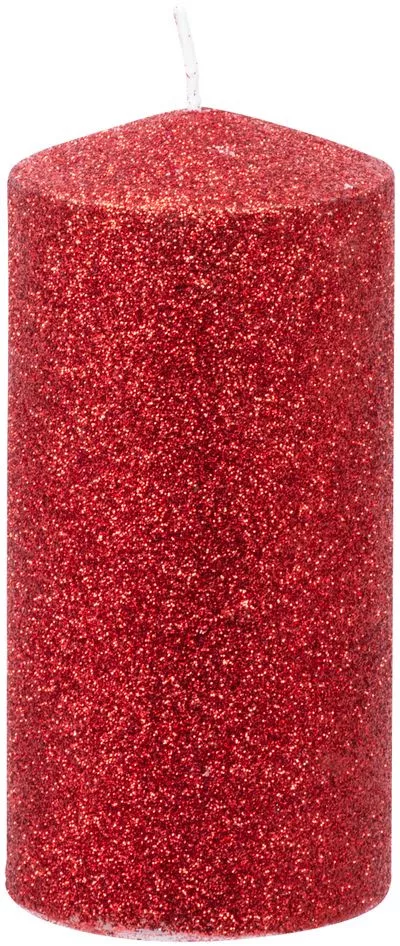 MagicHome karácsonyi gyertya, 5,5 x 12 cm, piros, csillámokkal