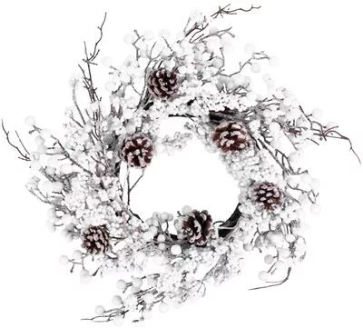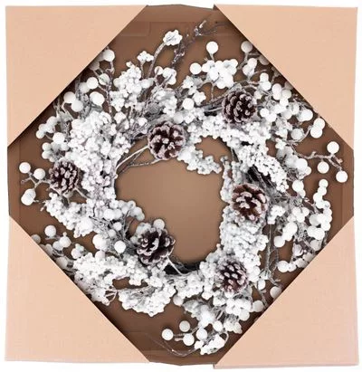 MagicHome karácsonyi koszorú, havas, tobozokkal, 50 x 50 x 14 cm