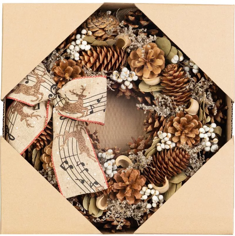 Teremtsen varázslatos ünnepi hangulatot az elegáns MagicHome természetes karácsonyi koszorúval. Ez a koszorú természetes anyagokból, például fenyőtobozokból és szárított díszekből készült, amelyek hitelesen néznek ki, és a természet egy darabkáját hozzák el a belső térbe.