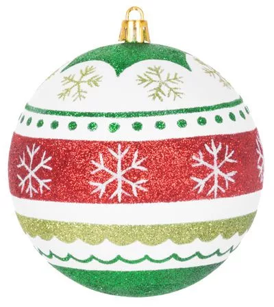 A karácsonyfa díszkészlet a karácsonyfa ünnepi díszítésére szolgál. 4 db díszített, egyenként 10 cm átmérőjű gömbből áll. A gömbök színe piros-zöld. Műanyagból készült.