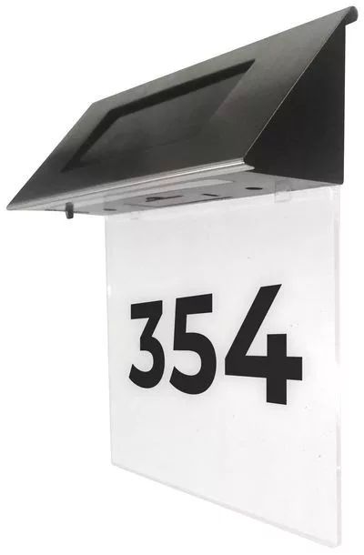 Az elegáns MagicHome napelemes házszám nagyszerű kiegészítője lesz otthonának. Tökéletes megoldás elektromos csatlakozás nélküli falra. Kiváló minőségű rozsdamentes acélból és műanyagból készült. A számok felragasztására szánt felületet 4 db LED lámpa világítja meg, így a számok sötétedés után ragyogóan kiemelkednek. Az akkumulátort napközben egy amorf napelem tölti fel, a maximális fénykapacitás kb. 8 óra.
