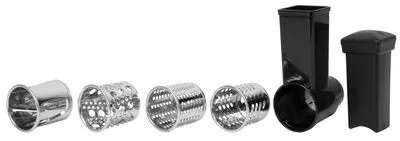 4 különböző dobot tartalmaz: vastag durva reszelő dob, finom reszelő dob, nagyon finom reszelő/örlődob és szeletelő dob.