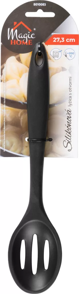 A MagicHome szilikon tálalókanál lyukakkal ideális segítője minden konyhának. Perforált kialakításának köszönhetően alkalmas olyan főtt ételek tálalására, amelyeket le kell szűrni - például zöldségek, tészták vagy gombócok. A kiváló minőségű szilikon biztosítja a tapadásmentes felületek kíméletességét és a nagy hőállóságot. Mivel szilikonból készült, nem karcolja meg a felületeket, így érzékeny főzőedényekkel is használható.