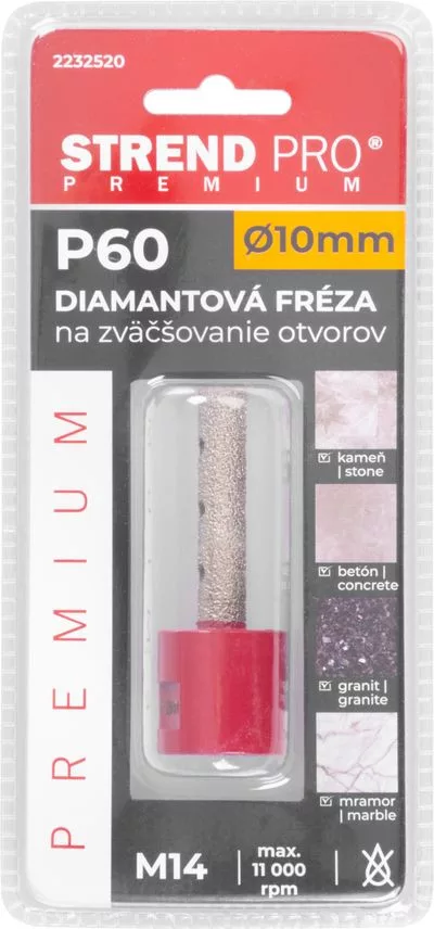 A Strend Pro gyémántvágót a kemény csempén, kerámián, greszen, üvegen és márványon meglévő lyukak nagyítására, tisztítására és ferdítésére tervezték. Nem új lyukak fúrására szolgál. A megtisztított lyukak csökkentik a csempe, üveg vagy márvány későbbi repedésének kockázatát. Ajánlott felfelé és lefelé marni, hogy a hűtés biztosítása érdekében a maró teljes magasságát kihasználjuk. Használja száraz maráshoz sarokcsiszolóban (M14-es menet).