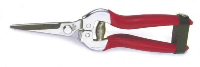 Kerti olló szőlő betakarításához. Egyenes rozsdamentes acél penge. Műanyag bevonatú fogantyú a kényelmes fogásért.