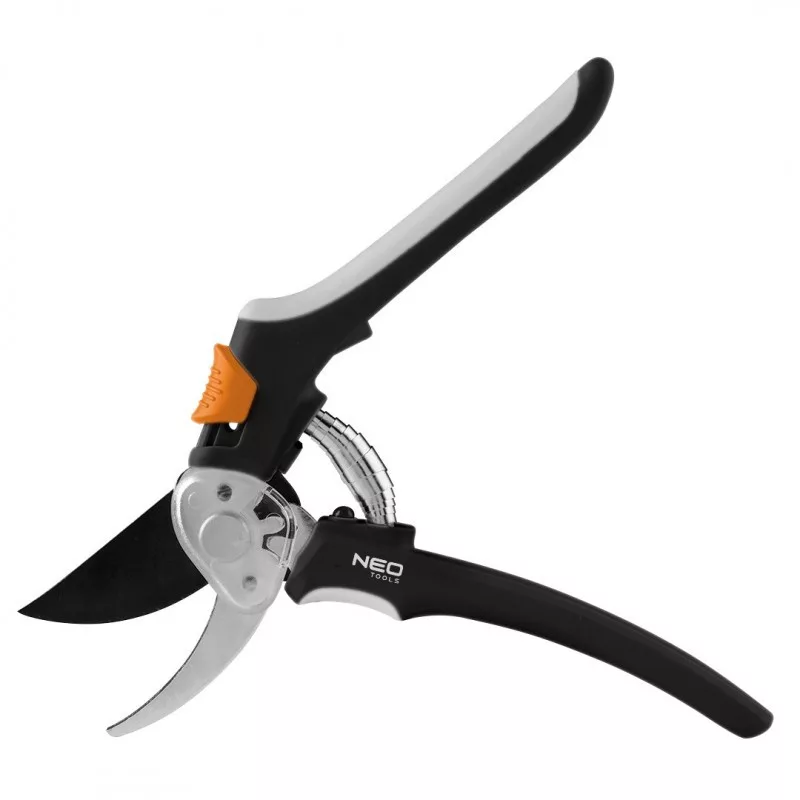 A NEO 15-204 egy áttételes, mellévágó típusú metszőolló, melynek maximális vágási átmérője 18 mm. Ez egy egykezes szerszám, melyet praktikus fogaskerékkel láttak el, így lehetővé teszi a kisebb erőkifejtést igénylő munkát. Az ergonomikus fogantyúval rendelkező kialakítás kényelmes fogást biztosít, míg a puha gumi részekkel ellátott fogantyúval és az egy gombbal aktiválható biztonsági zárral a biztonságos működést segíti elő. A by-pass pengerendszer növeli a vágás pontosságát és tisztaságát. A kiváló minőségű, edzett acélból készült penge kemény és száraz fához készült, így rendkívül tartós és ellenálló. A tapadásmentes PTFE bevonat pedig megkönnyíti a vágást és a tisztítást. Ezzel a metszőollóval könnyedén vághat finom ágakat, hajtásokat, bokrokat, virágokat és fűszernövényeket.