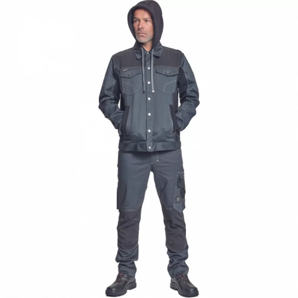 CORDURA® betétekkel; levehető kapucnival; fém gombok; állítható mandzsetták; 2 oldalzseb; 2 gombos mellzseb; fényvisszavető csíkok