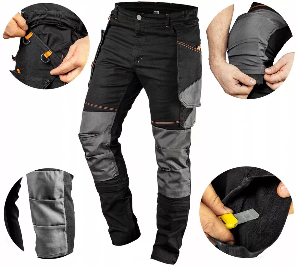Munkanadrág karcsúsított (slim fit), lecsatolható szerszámzsebek, NEO - professzionális és otthoni használatra szánt, bármilyen munkához alkalmas, kényelmes nadrág. Elasztánnal kombinált anyagból készült, így jól illeszkedik az alakhoz és nem zavar a mozgásban. Tökéletes példája a slim típusú fazonnak, amely jól simul a testhez és kihangsúlyozza az alakot.